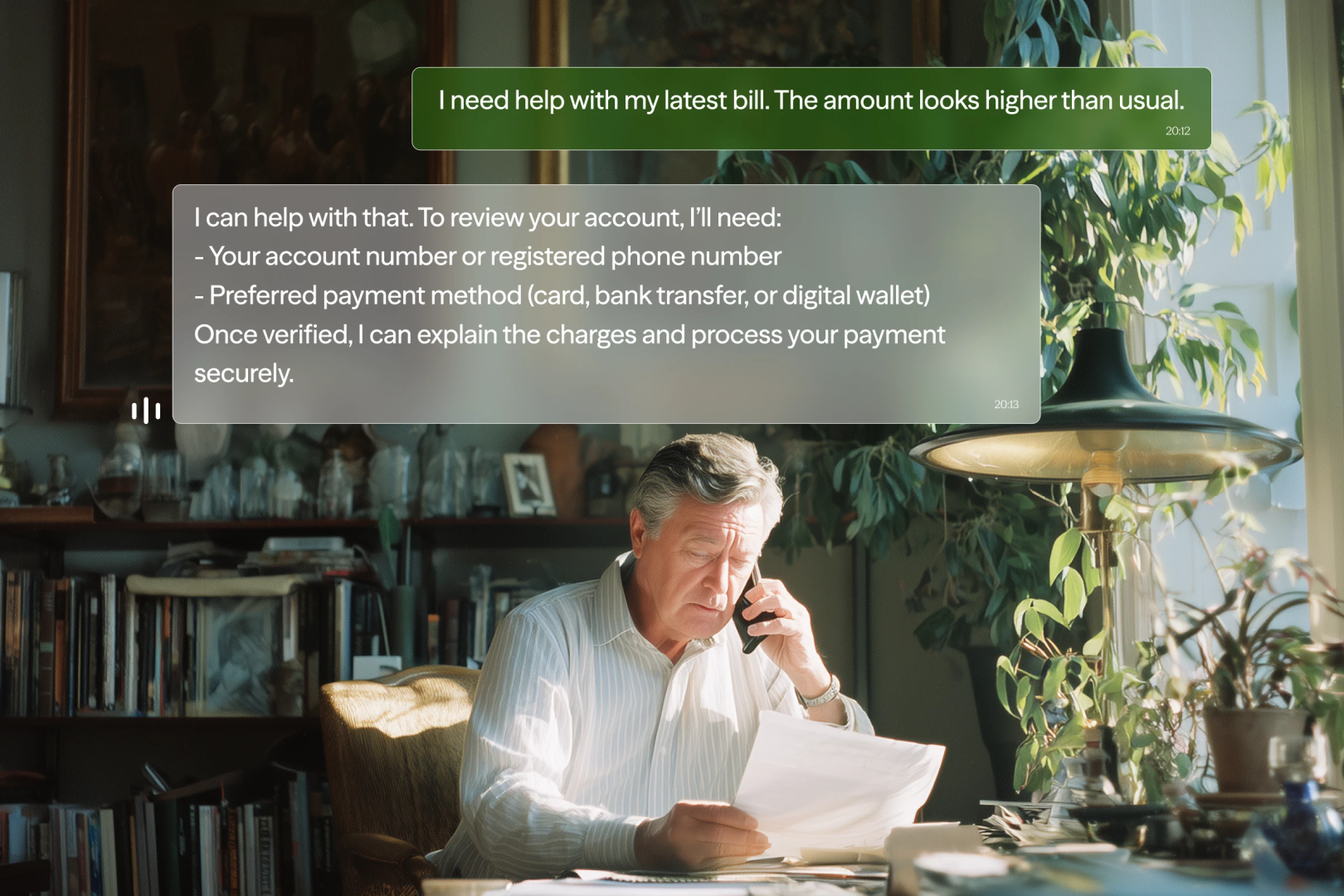 Securely manage billing inquiries, payment processing, and account updates, reducing call volumes and errors.